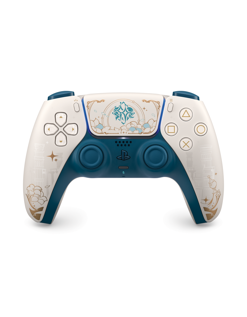 Domina la energía elemental en el mundo de Teyvat en PlayStation®5 con el control inalámbrico DualSense®: edición limitada de Genshin Impact. Destaca los emblemas de los viajeros gemelos Aether y Lumine, junto con su confiable guía y compañera Paimon, esta paleta etérea de colores blanco, dorado y verde está adornada con glifos arcanos de un reino de fantasía.