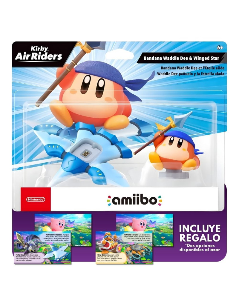 En el juego Kirby™ Air Riders, coloca la figura amiibo™ de Bandana Waddle Dee sobre la figura amiibo de la Estrella Alada para crear un combo de Piloto y Máquina de Aterrizaje.