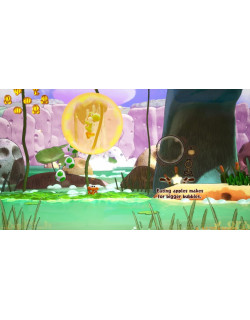 La Ciencia del Gusto: Una de las mecánicas más comentadas en los avances es la capacidad de Yoshi para "probar" criaturas. Al tragar ciertos seres, Yoshi experimentará efectos secundarios basados en su sabor o composición. Por ejemplo, los Glubbits, criaturas que escupen burbujas, tienen un sabor a jabón que permite a Yoshi lanzar ráfagas de burbujas en lugar de huevos, permitiéndole flotar o atrapar enemigos.